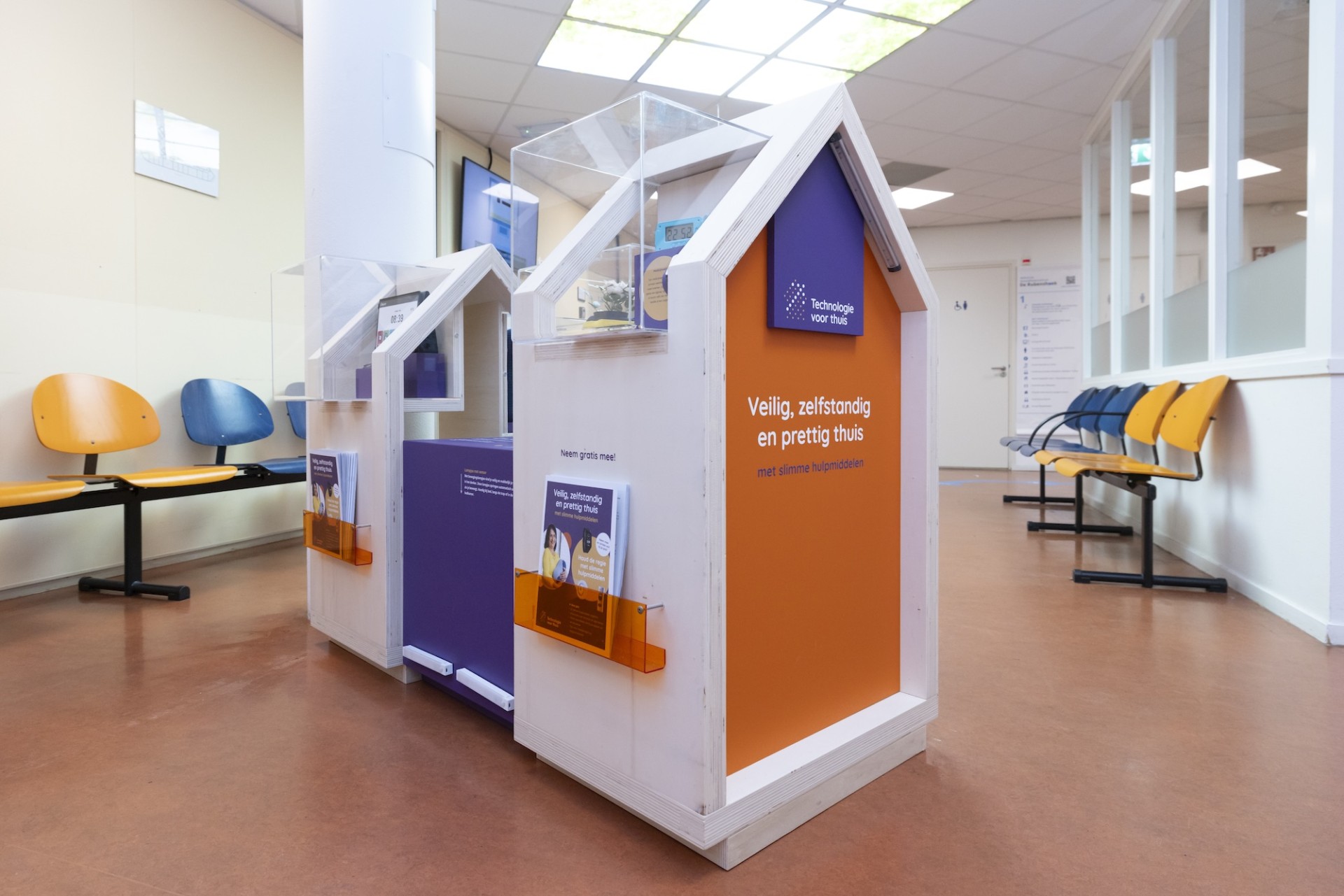 Onze mini-tentoonstelling brengt slimme hulpmiddelen letterlijk dichterbij. Als bezoeker maak je kennis met allerlei innovaties, zoals een slim horloge, medicijnwekker, slaaprobot, zorgrobot of heupairbag. Je ziet en ervaart hoe hulpmiddelen het dagelijks leven thuis makkelijker en veiliger kunnen maken.